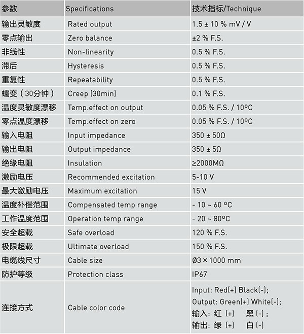 不銹鋼材料,低外形,采用金屬箔式應(yīng)變片技術(shù)。